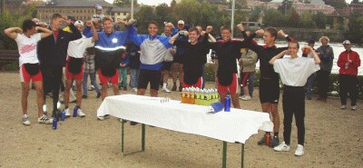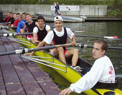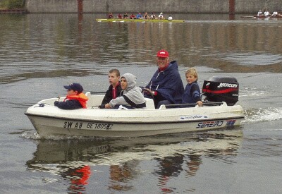 Jugend setzt sich durch Vereinmeisterschaft des Ruder-Clubs “Franken” Dieses Jahr wurde am 22.September die traditionsreiche Clubregatta ausgetragen. Von den Anfängern über die Jugend bis hin zu Freizeitruderern und Masters waren aus allen Altersschichten Teilnehmer angetreten, um die Vereinsmeister in zehn Bootsklassen zu ermitteln. Bei den meisten Rennen stand der Spaß im Vordergrund, während manche Läufe, wie die Einer-Vereinsmeisterschaft oder der Herausforderungs-Achter, durchaus ernst genommen wurden. Die Regattaleitung lag wieder in den bewährten Händen des sportlichen Leiters Manfred Neubert. Lore Stuhlert führte das Regattabüro, Herbert Stuhlert fungierte als Starter und Schiedsrichter. Das Programm moderierte spontan Patrick Lunz als Regattasprecher mit seinem technischen Assistenten Hauke-Hans Hansen. Für die Verpflegung sorgte Astrid Neubert. Den Beginn an diesem verregneten, windigen und kalten Tag machte der Gig-Doppelvierer mit Steuermann der unter 18-jährigen. In den drei Booten saßen jeweils zwei aktive Jugendliche mit zwei ihnen zugelosten Anfängerruderern. Am aggressivsten aus den Startblöcken kamen Alexander Krüger, Fabian Fuhrig, Antonio Santoro, Harald Viemann und Simon Morsi, die ihren Vorsprung knapp vor den zwei schnell heranspurteten übrigen Booten ins Ziel retten konnten. Im Vierer-ohne mit festen Mannschaften konnten sich erwartungsgemäß die Favoriten Thomas Goecke, Matthias Preißler, Klaus Schaupp und Michael Scipio vor der Crew um Horst Masuch und einem Boot der Jugend durchsetzen. Als nächstes stand der Gig-4x+ der über 18-jährigen auf dem Programm. Hier gewannen Hubert Oppelt, Katrin Schott, Daniel Freiwald und Burgi Baumann. Sicherlich der erste Höhepunkt erwartete die Zuschauer im Rennen 4, der Einer-Vereinsmeisterschaft. Mit Sebastian Dittmar, dem bayrischen Meister, Matthias Preißler, einem Mitglied der Bayern-Auswahl und Patrick Lunz, dem Schlagzahlmonster, forderten vier talentierte und mit weniger oder mehr offiziellen Titeln dekorierte Jugendliche den Titelverteidiger Thomas Goecke heraus. Auf der lediglich 400 Meter langen Strecke konnte Patrick seine Stärke, die hohe Schlagfrequenz, voll ausspielen. Er lieferte sich mit dem amtierenden Meister ein packendes Kopf an Kopf Rennen, die anderen folgten mit einigem Respektabstand. Während Thomas im Endspurt den Druck erhöhte, versuchte Patrick nochmals die Schlagzahl zu steigern, was bei dem aufgewühlten Wasser fast zwangsläufig einen Krebs zur Folge haben musste. So konnte sich Thomas die Trophäe mit knapp einer Länge Vorsprung sichern. “Das war ein unnötiger, dummer Fehler. Na ja... vielleicht nächstes Jahr.”, kommentierte der Unterlegene. Dabei sein ist alles - unter diesem Motto stand die Fun-Einerstaffel quer über dem Main. So kam man sich bei der Wende schon mal ins Gehege oder verirrte sich in der Motorbootabteilung. Als bei der letzten Wende Hauke Hans-Hansen erkannte, dass er die schon zurückrudernde Uta Baumann nicht mehr einholen würde, versuchte er eine Seeblockade zu errichten, um seine Gegnerin am Erreichen des Ufers zu hindern. Jedoch gelang es ihr geschickt, das Hindernis zu umkurven und ungefährdet als Erste das Ziel zu passieren. Die Siegermannschaft: Bernd Meidel, Uta Baumann, Andreas Orlamünder, Hans Häfner, Sophie Krüger und Jonas Göb. Nochmals Vierer-ohne, diesmal mit zusammengewürfelten Mannschaften, stand als sechstes Rennen des Tages auf dem Plan. Diesmal setzten sich Bernd Meidel, Michael Scipio, Horst Masuch und Willi Wenzel durch. Im Rennen sieben wurde der Beste im Skiff der jugendlichen Anfänger und Freizeitruderer ermittelt. Antonio Santoro gewann knapp vor seinem jüngeren Bruder Fabio. Zur allgemeinen Erheiterung trug Hans Häfner bei, der das Rennen offensichtlich mit dem Kinderspiel “Ochs am Berg” verwechselte. Jedenfalls versuchte er, beim Signalton für den Sieger krampfhaft sich nicht mehr zu bewegen. Bei “Ochs am Berg” hätte er wohl klar gewonnen, hier landete er so lediglich auf Platz 4. Ein weiteres High-Light war der Familien-Doppelzweier, der vom Regattasprecher zu einer “Frage der Ehre” hochstilisiert und mit spannender Musik unterlegt wurde. Dass neun Boote gemeldet wurden und dass die meisten der Konkurrenten die Tage zuvor gewissenhaft trainierten, zeigt den hohen Stellenwert, den dieser Vergleich hat. Die erste Abteilung gewannen Klaus und Tobias Schaupp, vor den Santoro-Brothers, Horst und Martin Mauch sowie Sophie und Elise Krüger. In der zweiten Abteilung kamen die Titelverteidiger Willi und Peter Wenzel nicht in Fahrt, so dass Katrin Schott und Bernd Meidel mit Uta und Fritz Baumann um den Sieg kämpften. In einem Photo-Finish konnte sich dann mit einer Bugballspitze Vorsprung die Familie Baumann durchsetzen. Die Regatta neigte sich dem Ende zu, die Achter standen auf dem Programm. Im offenen Achter siegten Hermann Zembsch, Andreas Orlamünder, Willi Wenzel, Bernd Meidel, Katrin Schott, Christel Förster, Ute Schlessing und Fritz Baumann deutlich, obwohl sie mit dem alten Holz-Boot und Macon-Riemen unterwegs waren und Ute Schlessing vom Rollsitz rutschte. Ein Beleg technischer Klasse und physischer Stärke. Zum krönenden Abschluss wurde der Herausforderungs-Achter ausgetragen. Die Jugend wollte sich für die im Vorjahr erlittene, knappe Niederlage revanchieren und trainierte den Achter im Vorfeld. Um keine Schlupflöcher für eventuelle Ausreden zu geben, fuhr die Jugend das neue Boot mit Macon-Riemen, während sich die Al(l/t)–Stars dem Starter mit Bernardo Gärdes und Big-Blades stellten. Es herrscht also vom Material her Chancengleichheit. Am Start zahlte sich noch die größere Erfahrung der Titelverteidiger aus, die sich mit einer Luftkastenlänge in Führung brachten. Auf der Strecke konnten sich die Herausforderer mit einer höheren Frequenz und einem langen, kräftigen Schlag dann aber immer weiter nach vorne schieben und schließlich das Rennen klar mit einer Länge gewinnen.
