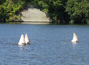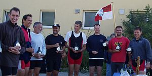 Patrick Lunz Vereinsmeister im Einer Die Vereinsmeisterschaft ist mittlerweile eine feste Institution in unseren Vereinsleben und auch dieses Jahr zog sie am Samstag, dem 13.09.2003, wieder viele Teilnehmer an. So vielfältig das Regattaprogramm war – von der Fun-Einer-Staffel bis zum Achter - so bunt durchgemischt waren auch die Ruderer – von Clubneulingen bis zu Urgesteinen wie Ernst Kaidel. Im ersten Rennen hatten dann auch gleich unsere ”Neuen” im GIG-Doppelvierer mit Steuermann die Chance zu zeigen, was sie gelernt hatten. Carolin Neubert, Jonas Göb, Timor Cinar, Elise Krüger und Felix Weigand gelang die Einstellung auf die zugelosten Mannschaftskameraden am besten und so fuhren sie einen ungefährdeten Sieg ein. Schon im zweiten Rennen stand mit dem Herausforderungsachter ein Höhepunkt der Regatta auf dem Programm. Nach der deutlichen Niederlage im Vorjahr gruppierte Manfred Neubert eine erstklassige Mannschaft um sich, um die Jugend wieder in die Schranken zu verweisen. Die Jugendlichen wollten natürlich ihren Titel verteidigen, gingen jedoch stark ersatzgeschwächt ins Rennen, da einige Leistungsträger aus gesundheitlichen Gründen nicht starten konnten. Schon am Start bemerkte man die fehlende Ruhe im Boot und so geriet man schon früh in Rückstand. Das Boot der Senioren in der Besetzung Manfred Neubert, Bernd Meidel, Ernst Kaidel, Horst Masuch, Bernd Müller, Hauke Hans-Hansen, Willi Wenzel, Andreas Orlamünder und Stm. Sebastian Dittmar konnte mit sauberer Wasserarbeit seinen Vorsprung auf der Strecke ausbauen und am Ende das Rennen mit einer Bootslänge klar für sich entscheiden. Nach dem Rennen war die Crew um Schlagmann Neubert auch sichtlich zufrieden die Ehre wiederhergestellt zu haben – musste man sich nach der letztjährigen Niederlage doch den Spott der Jugend gefallen lassen. Im dritten Rennen gingen die GIG-Doppelvierer der über 18-jährigen über die Strecke. Dieses Rennen konnten Willi Wenzel, Ute Schlessing, Uta Baumann, Raimund Zehmer und Stm. Christian Holzapfel für sich entscheiden. Mit Spannung wurde die Entscheidung um die Vereinsmeisterschaft im Einer erwartet. In Abwesenheit des Gewinners der letzten drei Jahre, Thomas Goecke, meldeten Patrick Lunz, Ernst Kaidel und Norbert Steiche für dieses Rennen. Ein klarer Favotit war nicht auszumachen – sicher ist Patrick Sprintspezialist und um es vornehm zu sagen “der altersmäßig Bestsituierte”, doch wer Ernst Kaidel kennt, weiß, dass er trotz seines Alters immer noch zu den schnellsten im Skiff gehört. Außerdem hätte er mit seinem elften Sieg der 1932 gestifteten Trophäe den Abstand zum Zweiten, Marcel Tully mit neun Siegen, etwas ausbauen können. Mit einem Blitzstart brachte Patrick gleich eine halbe Bootslänge zwischen sich und die Verfolger. Während er mit maximaler Schlagzahl über die Distanz von 400 Metern ging, bevorzugte Ernst einen ruhigeren Takt doch hielt er mit enorm großen Druck den Abstand konstant. Im Ziel betrug sein Rückstand weniger als eine Bootslänge – sicher eines der spannendsten Rennen. “Nächstes Jahr wird die Distanz auf 2000 Meter verlängert” forderte der Unterlegene mit einem Schmunzeln, während sich Patrick nach seinem zweiten Platz im Vorjahr überglücklich über den Gewinn des traditionsreichen “Rudermännchens” zeigte. Die meisten Meldungen gab es in der EUROFUN-Einer-Staffel. Diese wurde ihrem spaßigen Namen wieder vollauf gerecht, gab es doch wie immer erheiternde Szenen mit den kleinen blauen Booten, wobei die Navigation wohl das größte Problem darstellte. Die siegreiche Mannschaft: Alexander Krüger, Uta Baumann, Karen Laudenbach, Christian Fröschel, Willi Wenzel, Sophie Krüger, Martin Wenzel, Felix Weigand, Kai Hüser und Timor Cinar. Im offenen Vierer-ohne setzten sich Hauke Hans Hansen, Horst Masuch, Raimund Zehmer und Hermann Zembsch mit klarem Vorsprung durch. Der Junior-Einer war für die jüngeren Ruderer bestimmt, die dieses Jahr ihre ersten kleinen Regatten bestritten hatten und von Stephan Grajczeck ans Rennrudern herangeführt werden. Jonas Göb zeigte eine sehr gute Leistung im Skiff und gewann das Rennen vor seinen Kameraden deutlich. Mit mindestens ebensoviel Ehre wie der Herausforderungsachter ist der Familien-Doppelzweier verbunden – treten hier nicht die Generationen gegeneinander an, sondern die Familien-“Clans”. Da verwundert es nicht, dass sich mit Peter und Martin Vertreter des wohl größten Ruderclub-Clans, den Wenzels, sicher den Sieg holten. Besonders hervorzuheben ist die Leistung von Sophie und Elise Krüger, die sich einen respektablen zweiten Platz erruderten. Liegt es daran, dass es mit ihrem Bruder noch einen Krüger im Ruderclub gibt? Als Abschluss der sowohl organisatorisch, als auch meteorologisch (die Sonne schien!) gelungenen Veranstaltung stand der offene Achter. Wieder errang die Mannschaft um Schlagmann Neubert den Sieg. Mit an Bord waren noch Andreas Orlamünder, Horst Masuch, Raimund Zehmer, Uta Baumann, Karen Laudenbach, Bernd Müller, Astrid Neubert und Stm. Martin Wenzel. Bei der abschließenden Siegerehrung gab es kaum einen Ruderer, der ohne Bocksbeutel, Mütze oder Energy-Drink nach Hause gehen musste. Dass es keine Zinnbecher mehr gab, bedauerte als einzige Uta Baumann. Doch dank des spontanen Tauschangebotes von Bernd Meidel (Bocksbeutel gegen Zinnbecher), bekam auch Uta, was sie wollte. Patrick Lunz |