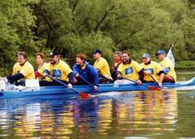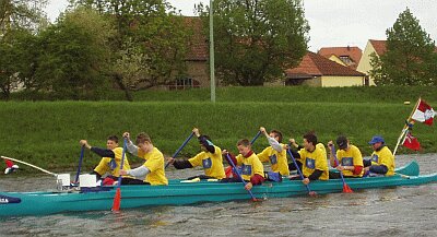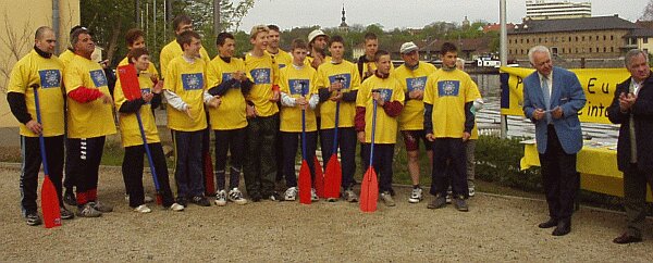 Unter Federführung unseres WWWW (WanderruderWart Willi Wenzel) übernahmen 16 Clubmitglieder den Streckenabschnitt Schweinfurt-Fahr im Rahmen der Aktion "Paddeln gemeinsam für Europa und den Erhalt einer lebenswerten Umwelt". Organisiert wird die Aktion von der Faltbootabteilung des Schwimmvereins Coburg (Kontakt: Uschi Zimmermann) in Zusammenarbeit mit David Train, dem Konstrukteur der benutzten Bell-Boats. Ziel ist die sportliche Demonstration des friedvollen Miteinanders in den europäischen Staaten. Dazu bietet sich der Main als alter fränkischer Handelsweg und nach wie vor bedeutende wirtschaftliche Lebensader Mitteleuropas besonders an. Fast alle am Main ansässigen Kanu- und Rudervereine wirken aktiv mit, indem sie Einzeletappen von jeweils ca. 20 km übernehmen (Coburg 26.4. bis Frankfurt/Main 5.5.). Pünktlich am Europatag endet die Tour an der Friedensbrücke in Frankfurt am Main. Dann werden die unterwegs gesammelten Botschaften dem Europabüro der Stadt Frankfurt überreicht. Bernd Meidel