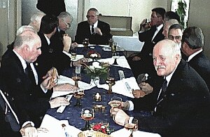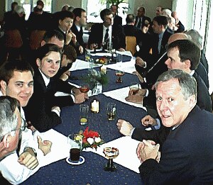 Im vollbesetzten Clubzimmer richtete der erste Vorsitzende, Siegfried Kaidel, seine Wünsche für das neue Jahr an die Clubfamilie. Besonders würdigte er Herrn Helmut Steffen mit der goldenen Ehrennadel für vierzigjährige Mitgliedschaft. Außerdem galt sein Dank zahlreichen Spendern für Ihre Weihnachtsgaben und schließlich allen Mitgliedern, die mithalfen, die zahlreichen Aktivitäten des vergangenen Jahres auszurichten. Neu waren die aktuellen Clubkrawatten, die - nicht zuletzt dank der werbewirksamen Krawattengirls, Uta und Katrin - reißenden Absatz fanden. Traditionsbewahrend wirkten die Entzündung der Clubkerze, die Grußworte des Ehrenvorsitzenden, P.O Greber, sowie das abschließende "Hipp-Hipp-Hurra". |
